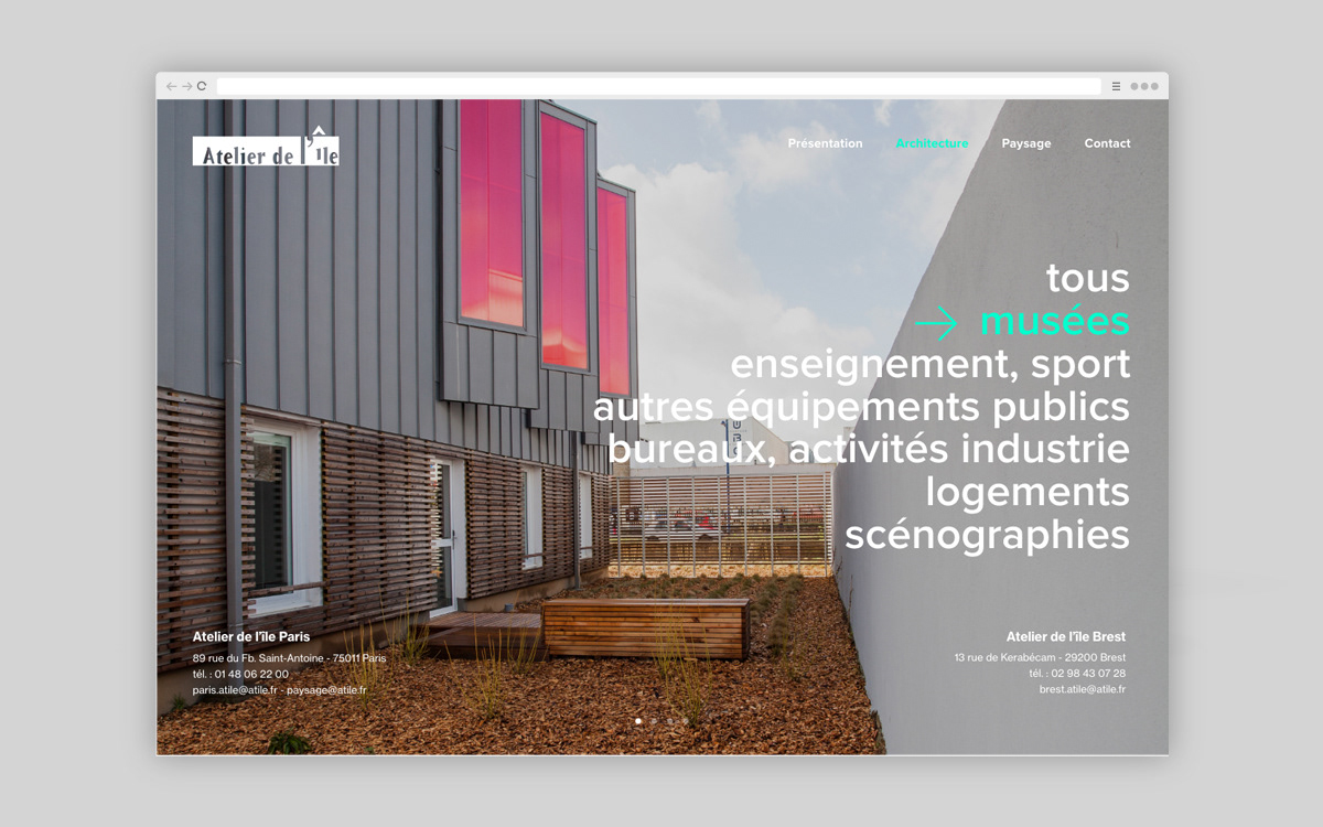Conception et création d'un site internet pour l'agence d'architecture et de paysagisme l'Atelier de l'île.