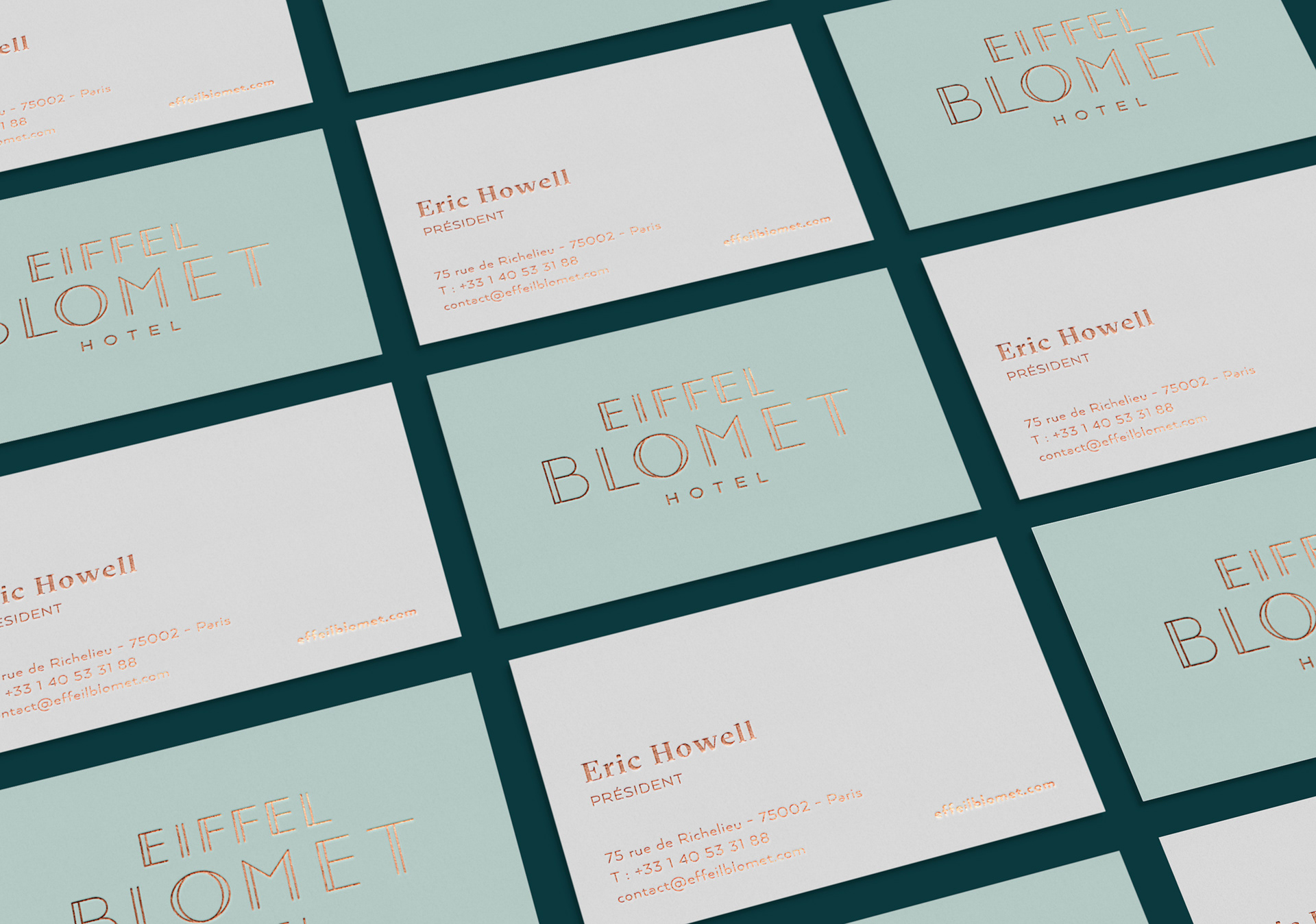 Design de l'Identité visuelle du nouvel hôtel parisien Eiffel Blomet.
