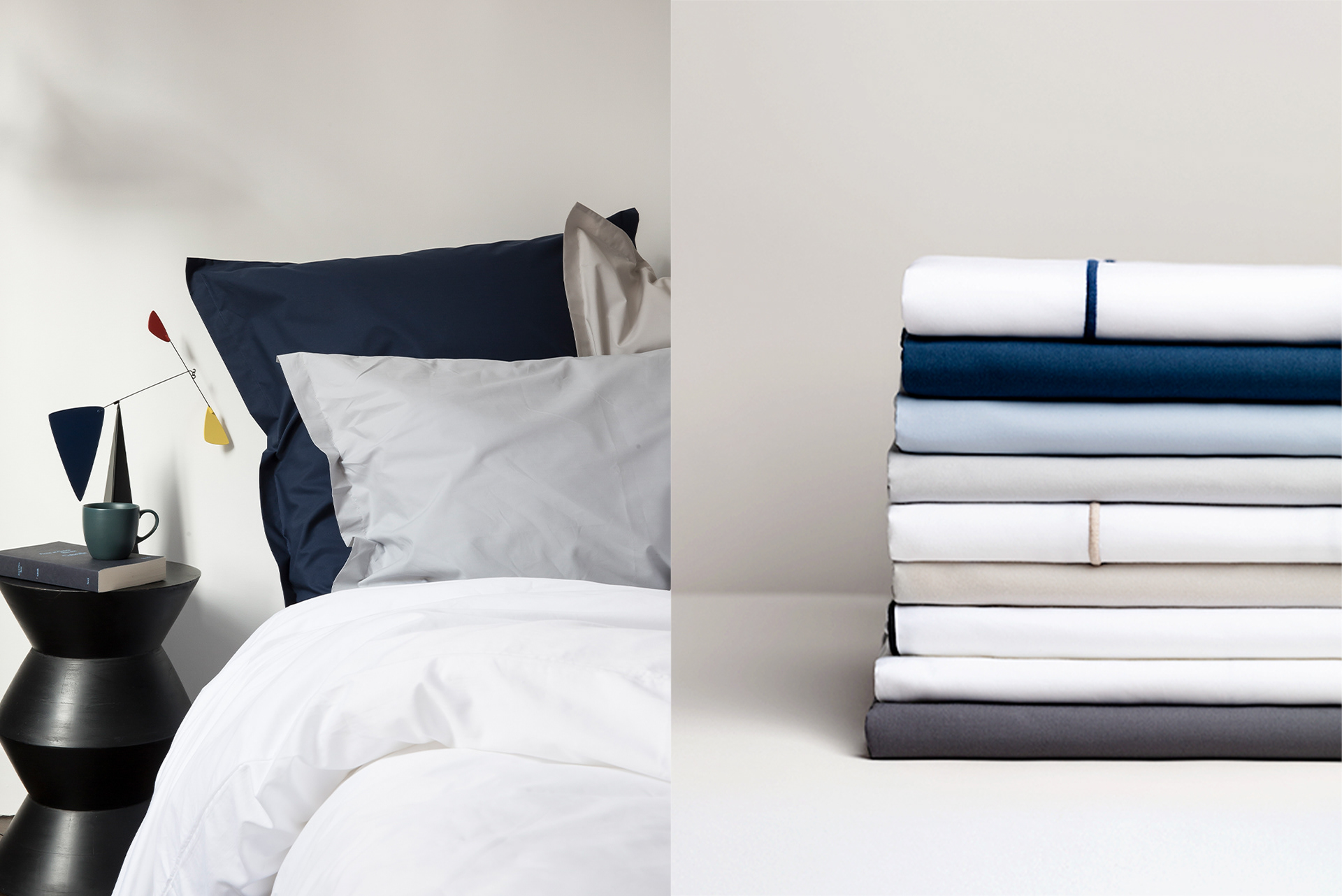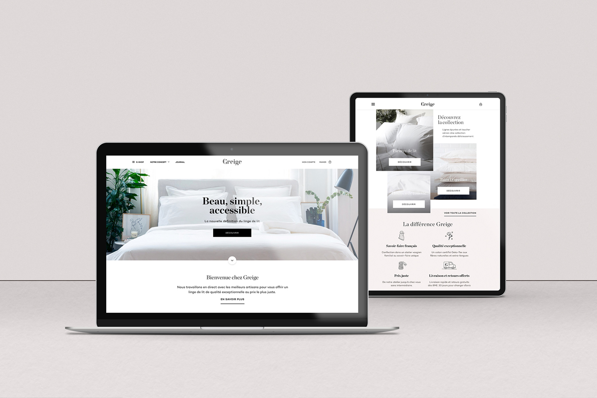 Logo, charte graphique, packaging, shooting, DA du e.shop et supports de communication pour une marque de linge de maison.