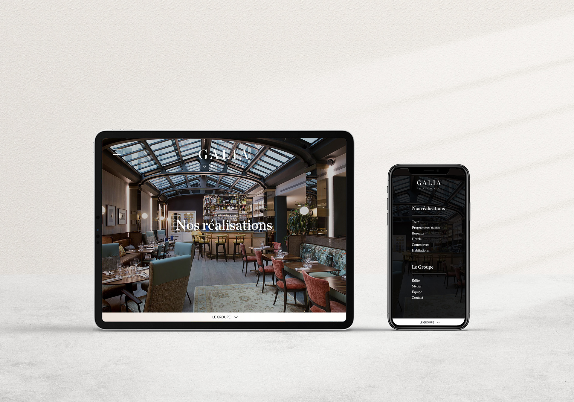 Design de l'Identité visuelle, du site internet et d'un carnet de projet pour le groupe immobilier Galia.