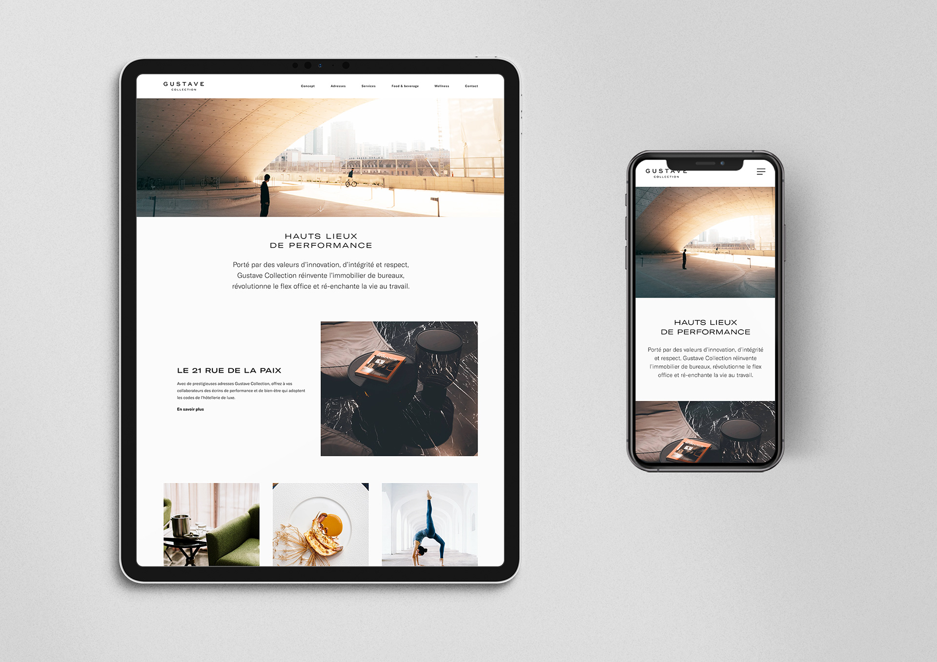 Design de l'Identité visuelle et du site internet du groupe Gustave collection.