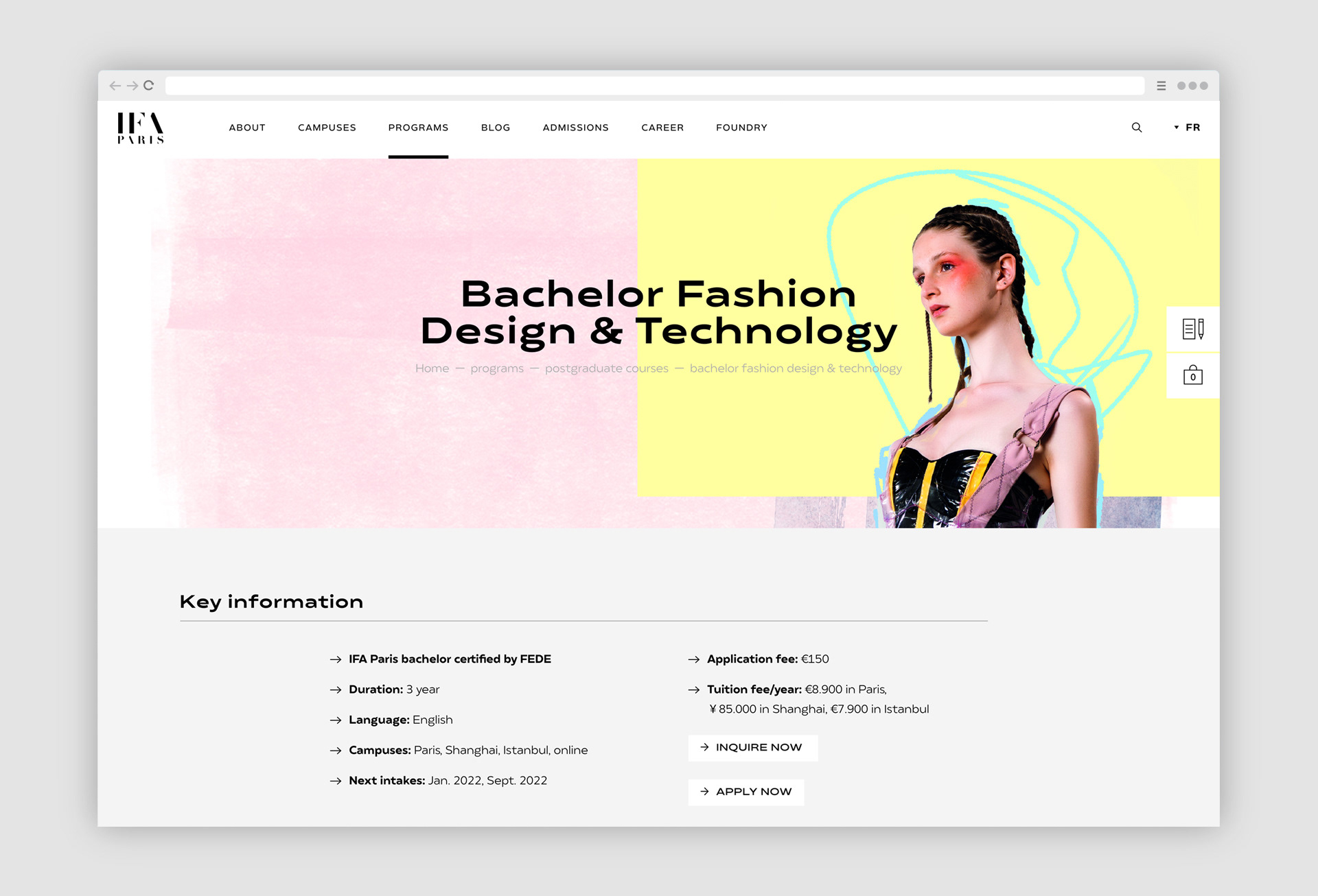 Conception et création d'un site internet ainsi que de visuels et d'illustrations pour l'école de mode IFA Paris.