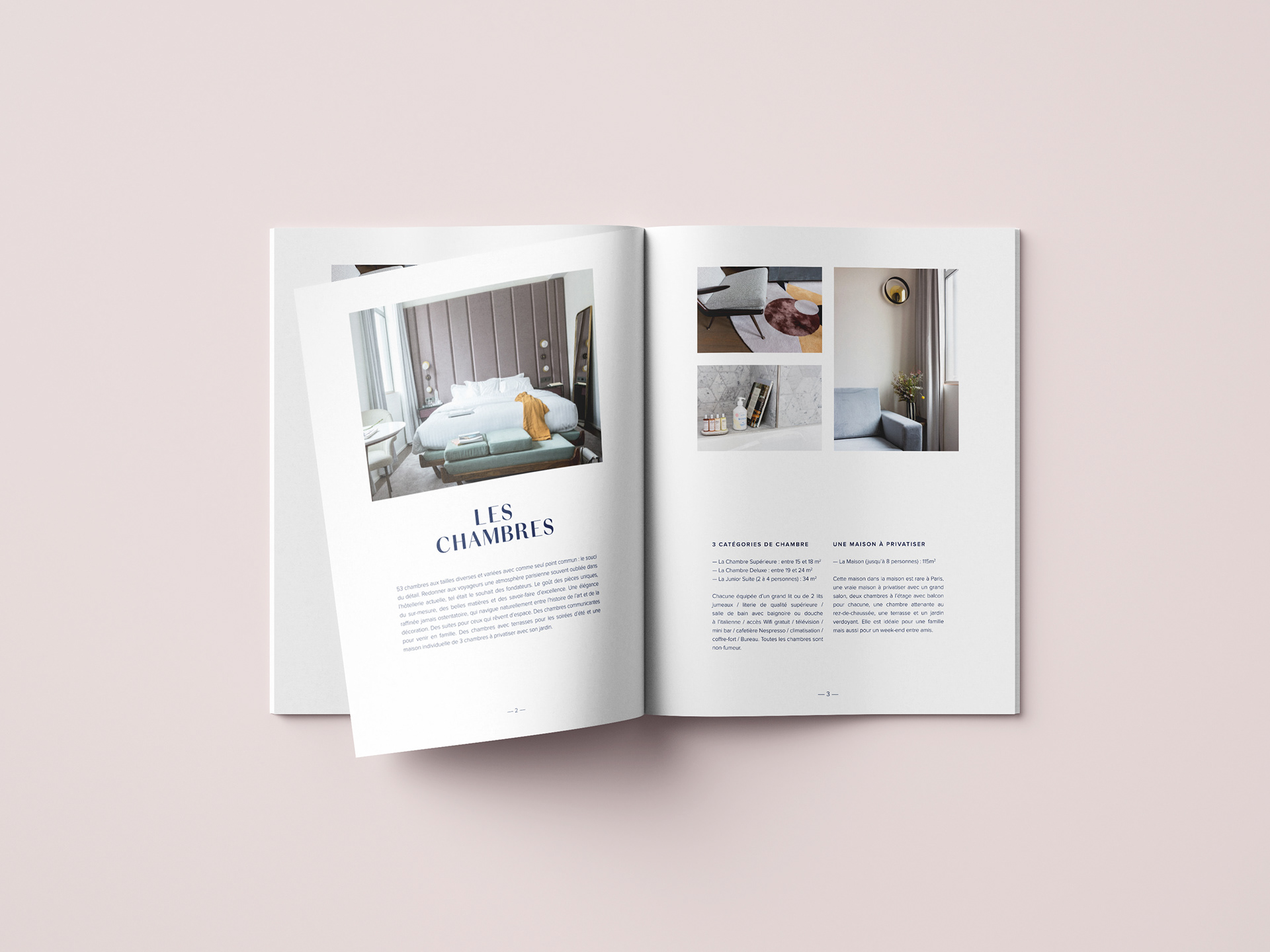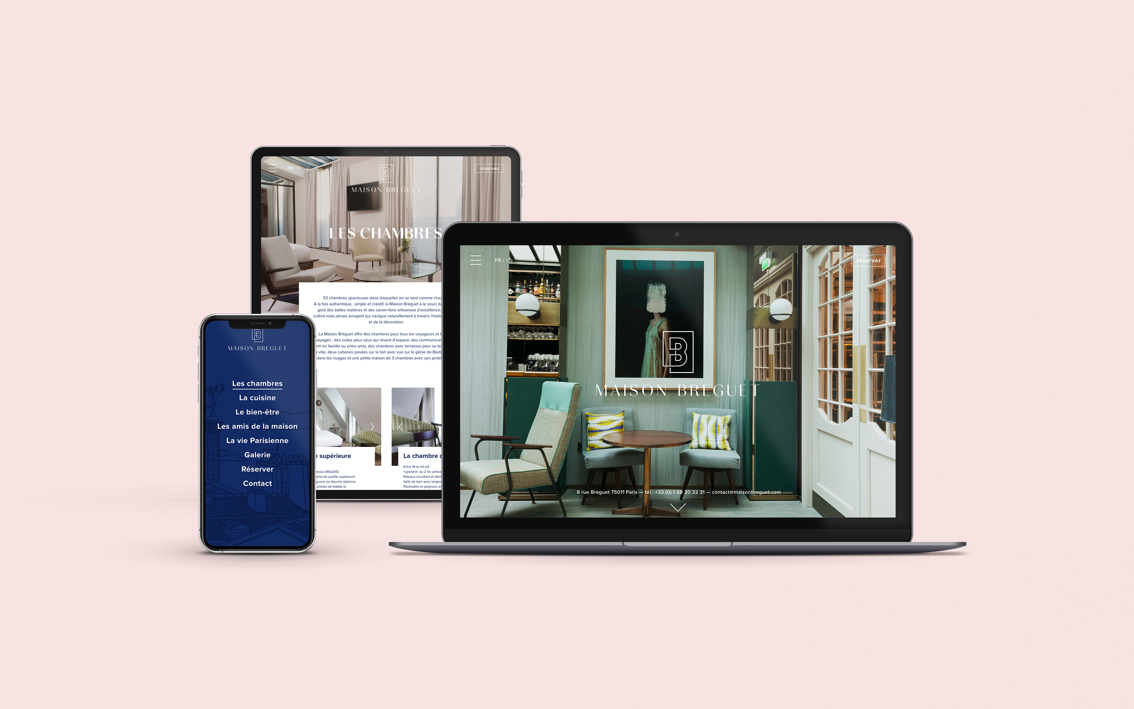 Création de l’identité visuelle et du site internet de Maison Bréguet, boutique hôtel cinq étoiles Parisien.