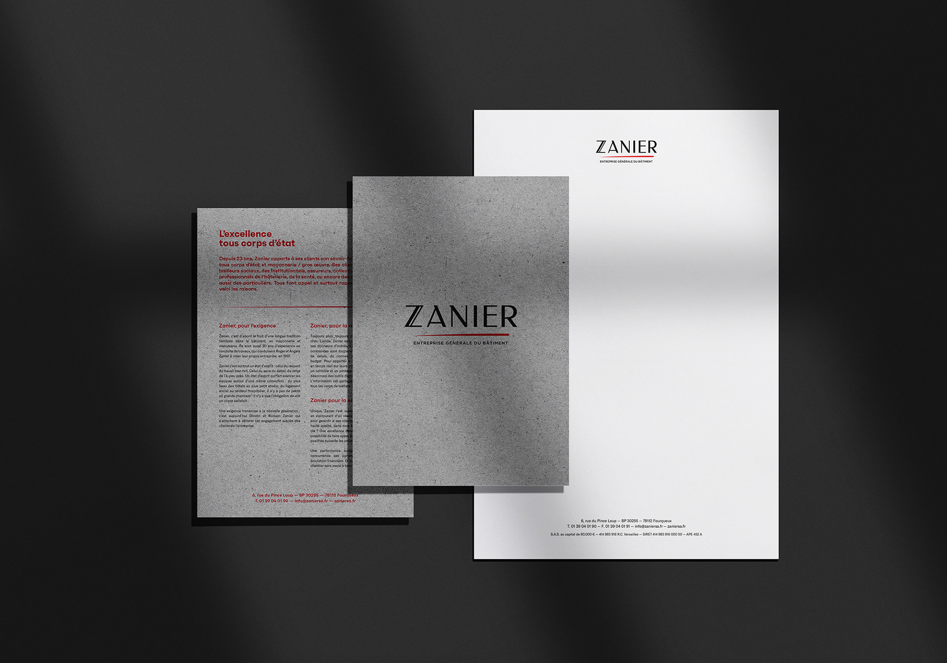Refonte de l’Identité visuelle, de la société Zanier, entreprise de travaux d’aménagement.